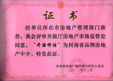河南省房地產業協會估價經紀專
